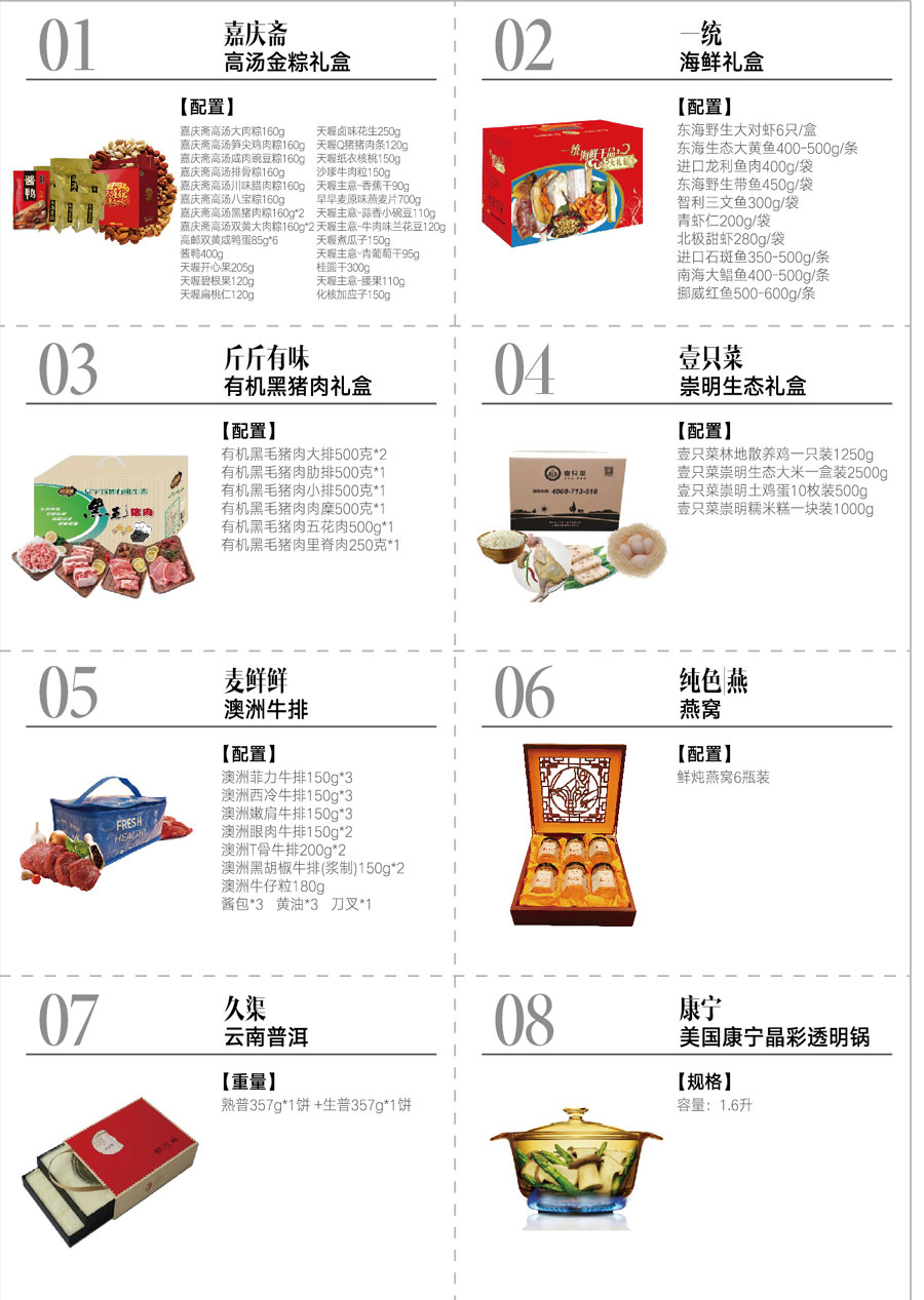 锦上佳福礼品册共有—138型/ 188型/ 238型/ 288型/ 328型/ 398型/ 468型/ 688型 / 888型 八种规格 锦上佳福端午礼品册(一册多选,全国配送) 1、礼品册兑换有效期:即日起至2020年12月31; 咨询热线: 13671720466/strong> |