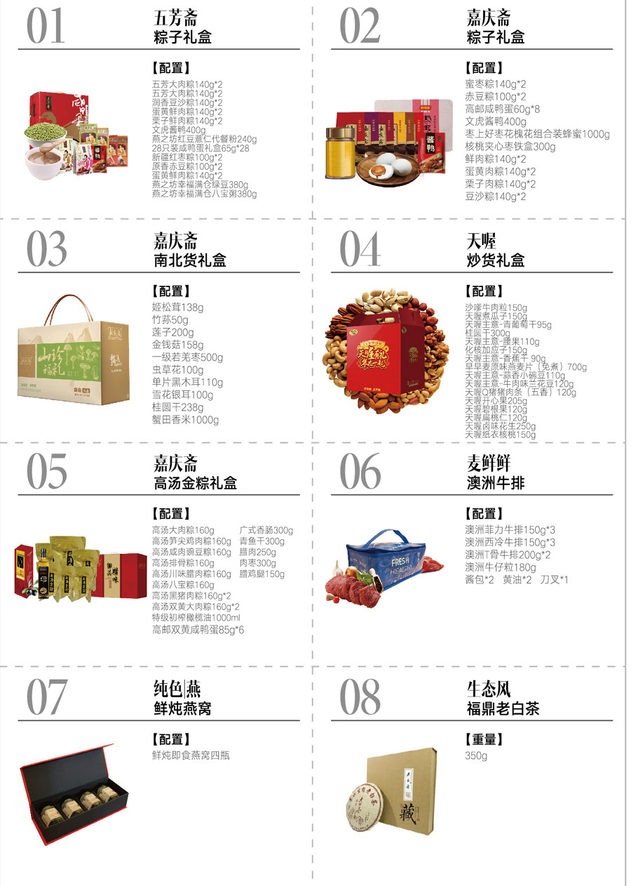 锦上佳福礼品册共有—138型/ 188型/ 238型/ 288型/ 328型/ 398型/ 468型/ 688型 / 888型 八种规格 锦上佳福端午礼品册(一册多选,全国配送) 1、礼品册兑换有效期:即日起至2020年12月31; 咨询热线: 13671720466/strong> |